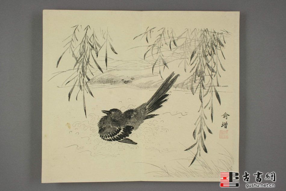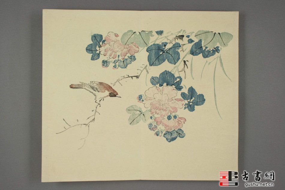 清中期日本木板摹刻中国古代字画册页,木板套色。