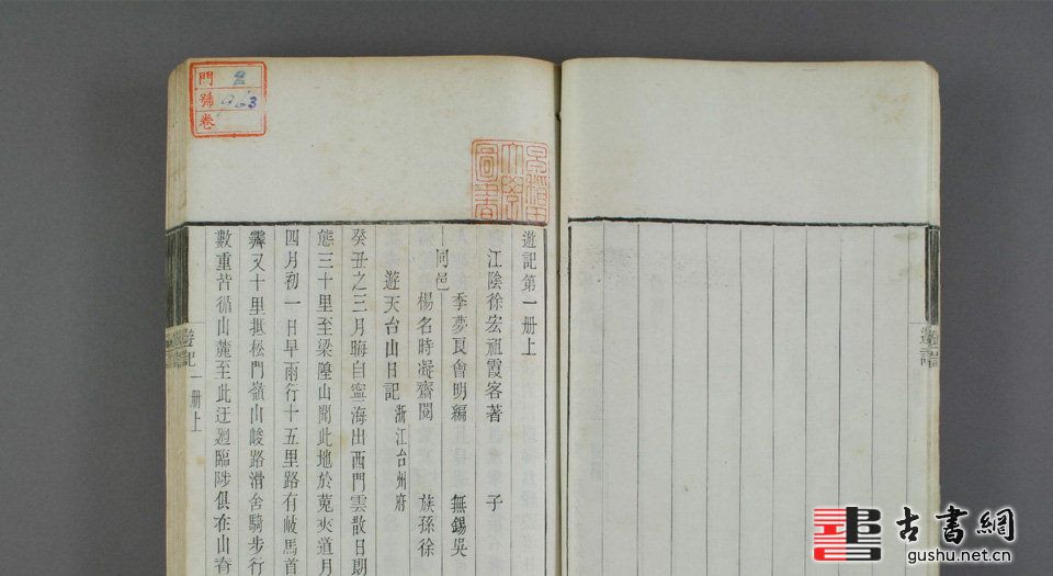 《徐霞客游记》是中国最早一部比较详细记录所经地理环境的游记,也是世界上最早记述岩溶地貌并考证成因的书籍。这个是光绪七年(1881)年痩影山房的木活字刊本,包含季梦良编辑(徐霞客的姻亲兼家庭塾师,是整理《徐霞客游记》第一人)10卷,和清代叶廷甲的补编。
