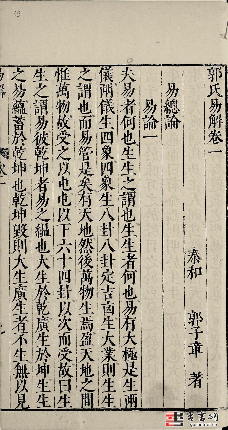《郭氏易解》之成书,在万历四十五年(1617),自始撰至成书,前后长达三十年。书成之后随即付刻,约于次年(1618)刻成,即初刻十五卷本。此本在明末清初尚有流传,但此后便流传日稀。目前所知国内外各收藏机构,仅法国国家图书馆藏有一部,大约在清代中后期,此本即已流入法国。除此十五卷本外,《郭氏易解》可能还有一种十四卷本,著录于《四库全书总目》,为江西巡抚采进,今已不传,具体情况难以考察。故此法国国家图书馆藏本为《郭氏易解》已知现存的唯一传本。(介绍参考)