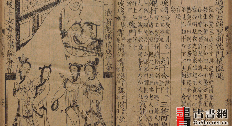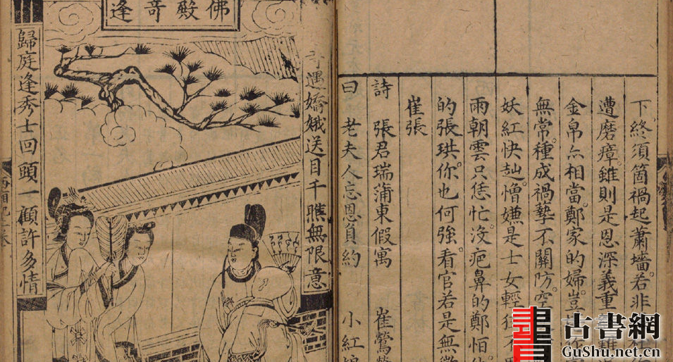 《西厢记》是元代杂剧杰作。王实甫依据唐人元稹《西厢会真记》传奇小说所描写的张生与莺莺的爱情故事创作。此本《重刻元本题评音释西厢记》含木版画17幅,书前附:熊氏春秋序、西厢会真记、秋波一转论、松金钏减玉肌、钱塘梦。此本为明万历20年(1592)熊氏(熊龙峰)忠正堂刊本。