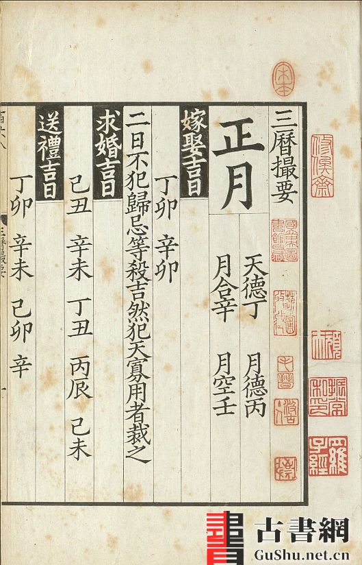 古人对于选择时日行事非常重视,到宋代已相当成熟,并有专著问世。此宋代编著《三历撮要》分三部分:一月到十二月每月的吉日(如嫁娶、求婚、送礼、出行等)、万通历吉凶图说、万通历吉凶图诀。此刊本为明末最大私人书坊虞山毛氏汲古阁影宋钞本。