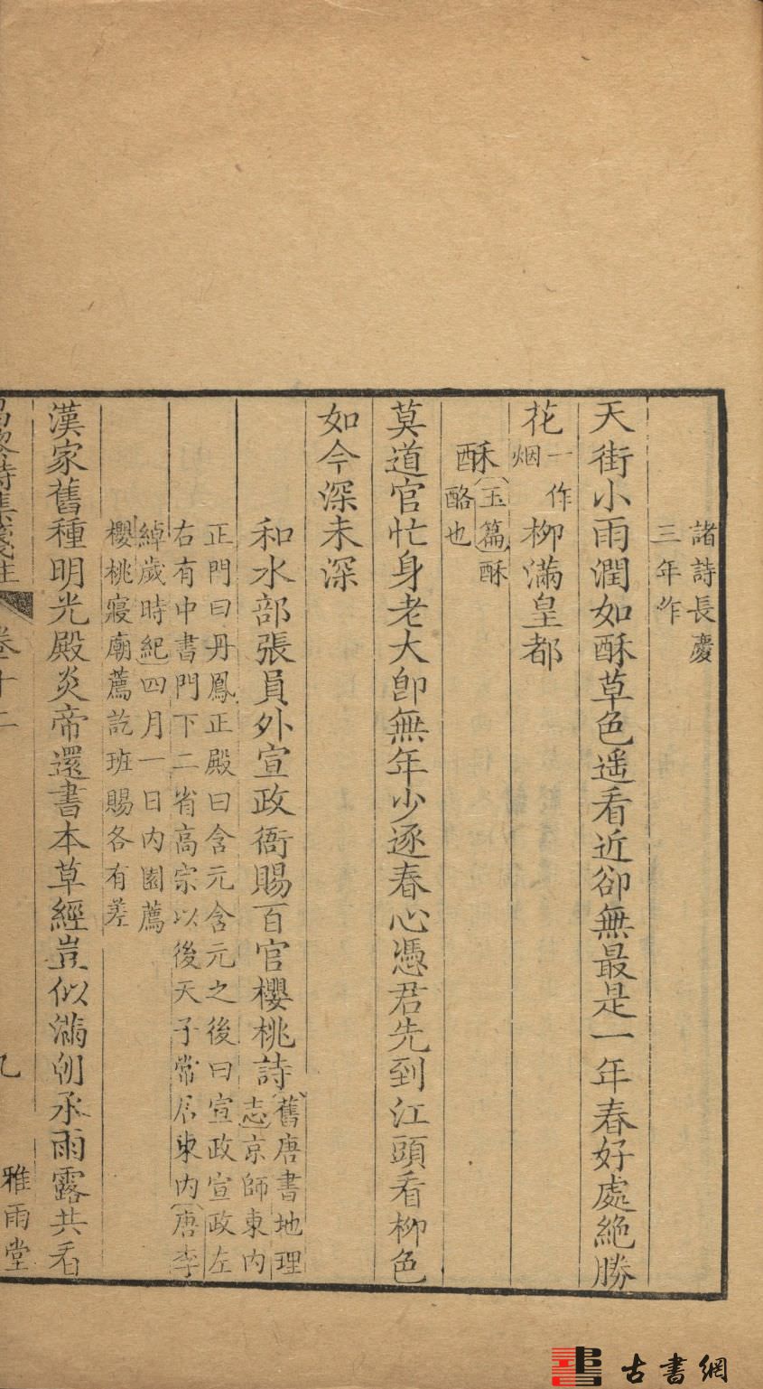 卢见曾,字抱孙,号澹园,建有书楼名 “雅雨堂”,又号雅雨山人。山东德州人。清朝政治人物。卢见曾一生积极从事刻书活动,先后校刊、刻印古籍三十余种。