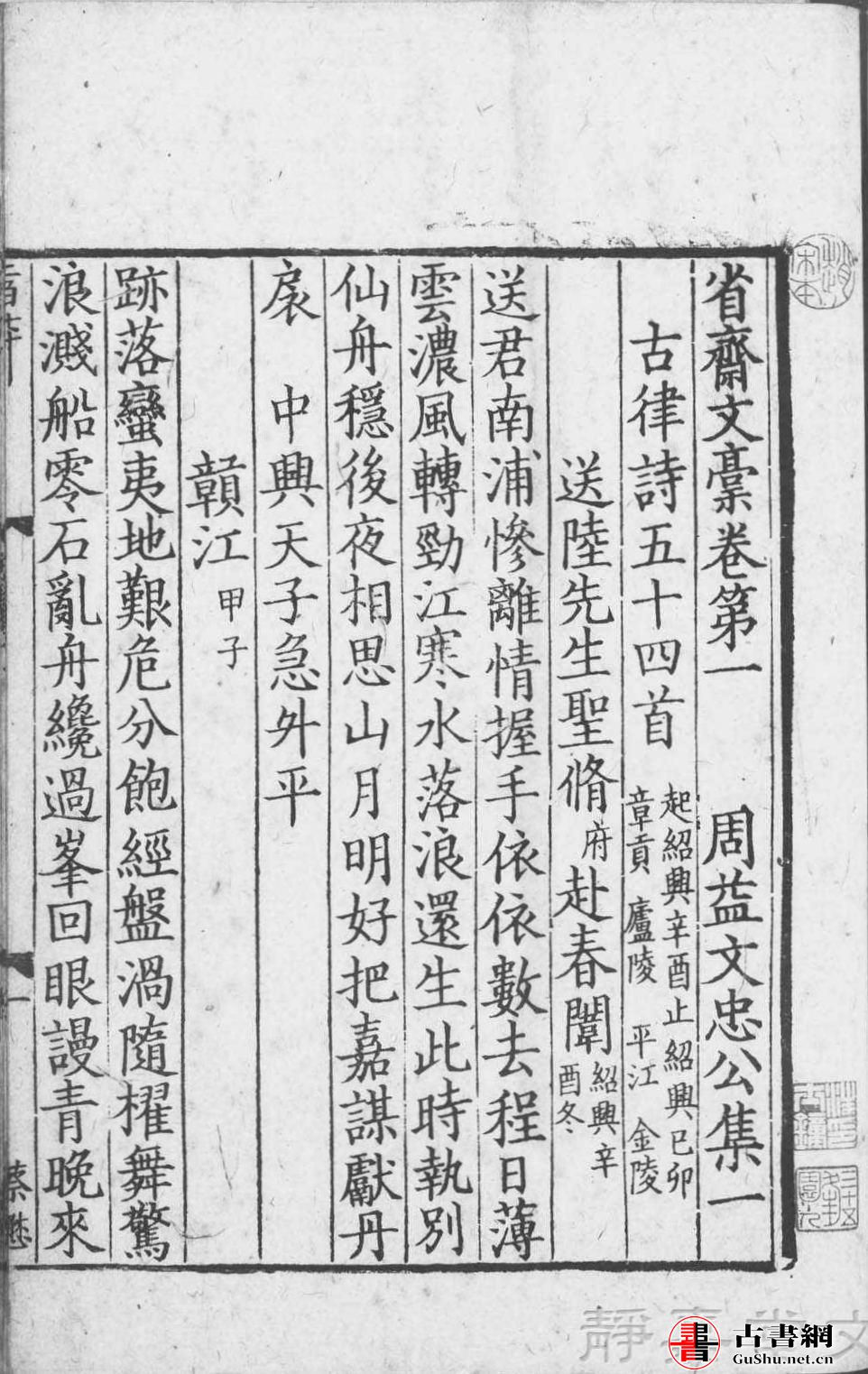 宋版. 集部. 周益文忠公集. 存 70 卷. 宋. 周必大撰. 南宋刊.40 册