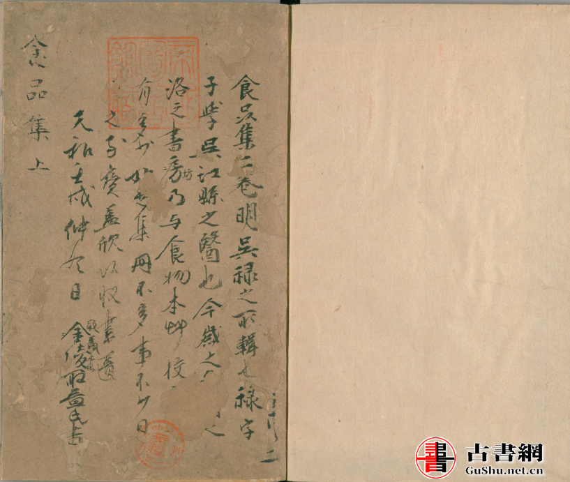 食品集.2卷附录1卷.明吴禄辑.嘉靖16年序刊