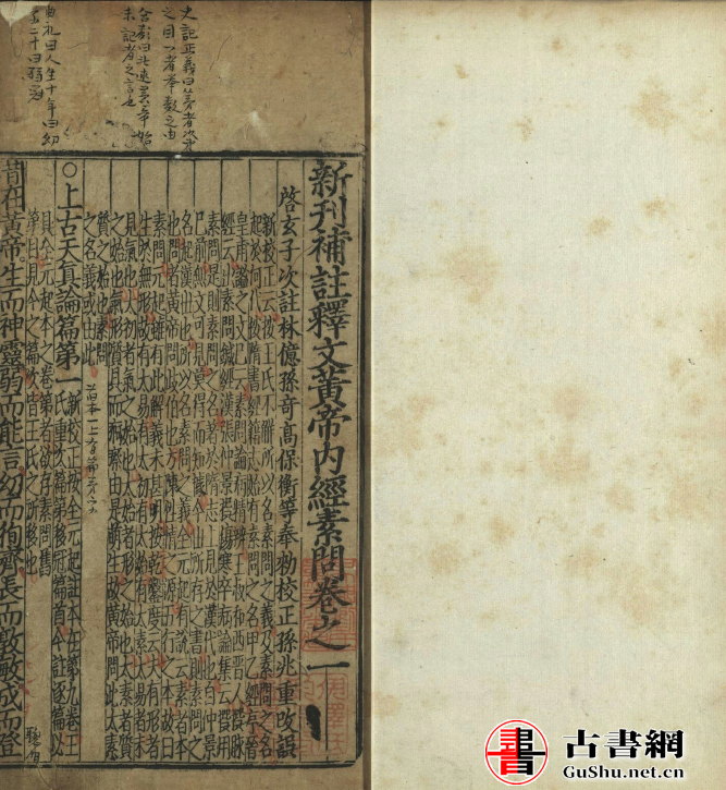 新刊补注释文黄帝内经素问.十二卷.唐.王冰.注.宋.林亿.校.明成化十年熊宗立种德堂刊本