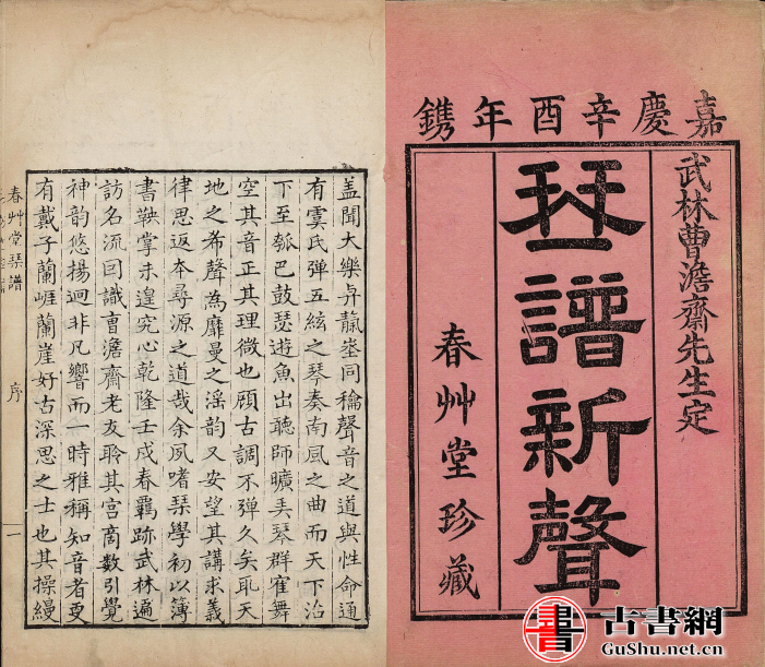 春草堂琴谱.琴谱新声.六卷.清.曹尚絅.苏璟.戴源.同撰.清嘉庆六年刊本