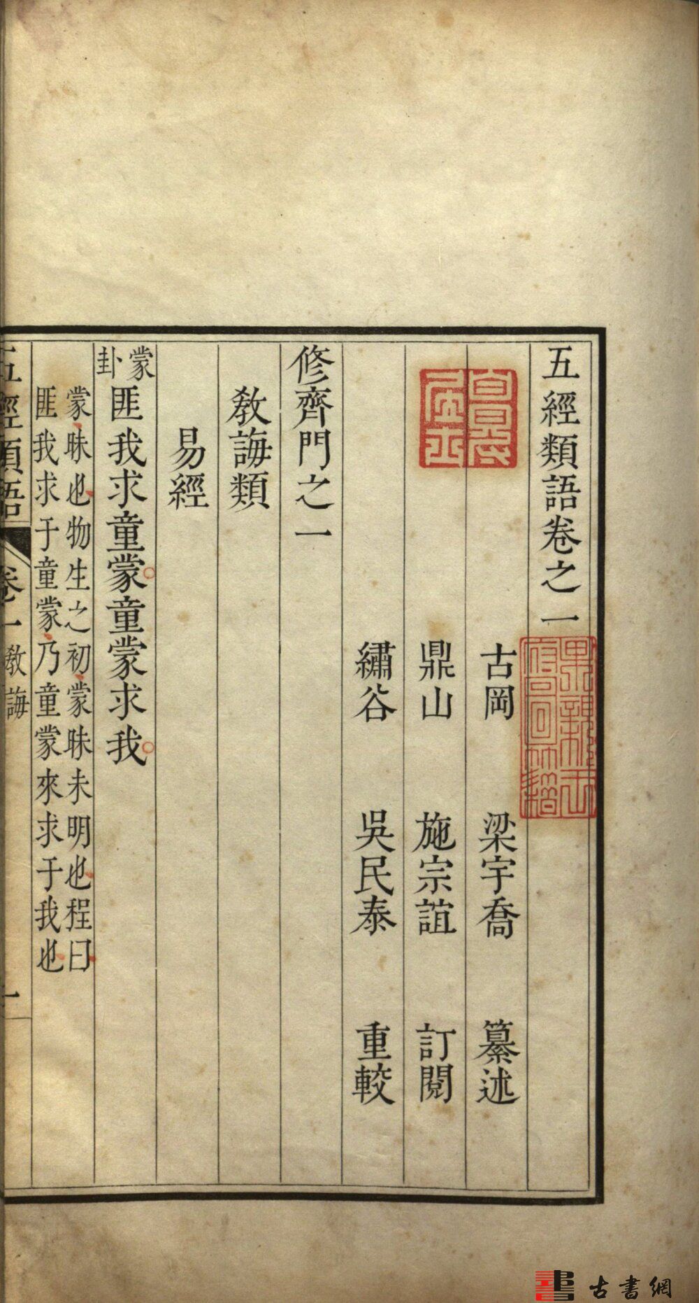 卷首题:古岡梁宇喬纂述、鼎山施宗誼訂閱、繡谷吳氏泰重較