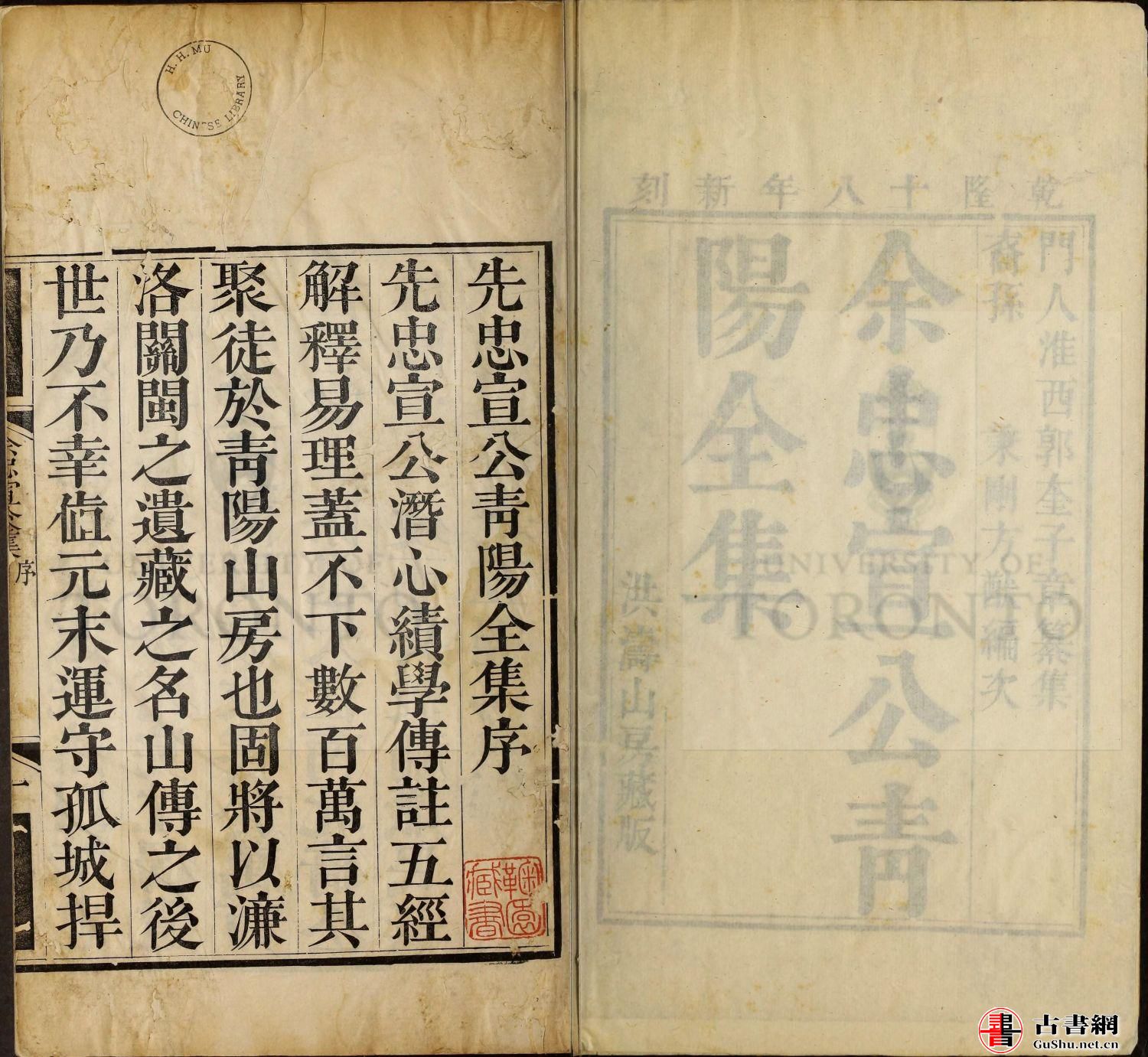 余忠宣公文集. 元. 余闕撰. 六卷. 洪濤山房藏板. 清乾隆十八年刊本 加拿大多伦多大学东亚图书馆藏