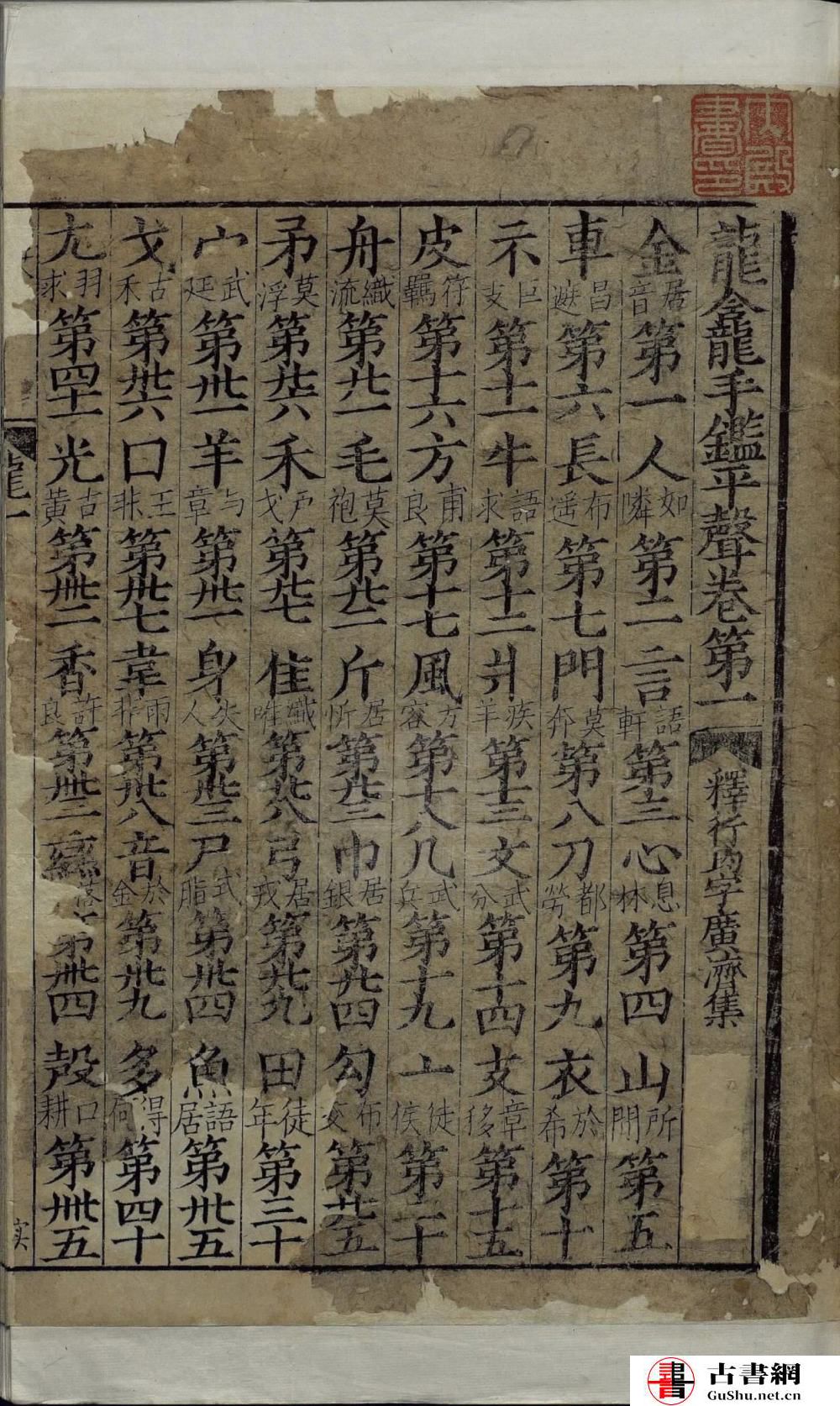 新修龙龛手鉴序(释智光撰) 卷一:金部第一、人部第二、言部第三、心部第四、山部第五、車部第六、長部第七、門部第八、刀部第九、衣部第十、礻部第十一、牛部第十二、爿部第十三、文部第十四、支部第十五、皮部第十六、方部第十七、風部第十八、⺇部第十九、亠部第二十、舟部第二十一、毛部第二十二、斤部第二十三、巾部第二十四、勹部第二十五、矛部第二十六、禾部第二十七、隹部第二十八、弓部第二十九、田部第三十、宀部第三十一、羊部第三十二、身部第三十三、屍部第三十四、魚部第三十五、戈部第三十六、囗部第三十七、韋部第三十八、音部第三十九、多部第四十、尤部第三十一、光部第三十二、香部第四十三、䜌部第四十四、殸部第四十五、黃部第四十六、辛部第四十七、厶部第四十八、高部第四十九、其部第五十、章部第五十一、生部第五十二、冫部第五十三、彡部第五十四、來部第五十五、兒部第五十六、而部第五十七、臣部第五十八、羸部第五十九、龜部第六十、元部第六十一、雲部第六十二、雲部第六十三、匚部第八十四、殳部第六十五、瓜部第六十六、龍部第六十七、番部第六十八、僉部第六十九、天部第七十、西部第七十一、旡部第七十二、凡部第七十三、名部第七十四、亭部第七十五、牙部第七十六、卑部第七十七、寧部第七十八、男部第七十九、孚部第八十、䧹部第八十一、申部第八十二、虍部第八十三、歺部第八十四、甘部第八十五、幺部第八十六、巛部第八十七、甾部第八十八、由部第八十九、尼部第九十、冂部第九十一、單部第九十二、圭部第九十三、凶部第九十四、興部第九十五、丹部第九十六、知部第九十七 卷二:手部第一、䖝部第二、水部第三、火部第四、土部第五、草部第八、口部第七、女部第八、鳥部第九、馬部第十、阜部第十一、广部第十二、丆部第十二、戶部第十四、米部第十五、雨部第十六、酉部第十七、齒部第十八、耳部第十九、瓦部第二十、犬部第二十一、豕部第二十二、豸部第二十三、虎部第二十四、鬼部第二十五、走部第二十六、羽部第二十七、皿部第二十八、網部第二十九、爪部第三十、矢部第三十一、黍部第三十二、鹵部第三十三、九部第三十四、幾部第三十五、斗部第三十六、鼠部第三十七、享部第三十八、此部第三十九、止部第四十、枲部第四十一、子部第四十二、鼓部第四十三、小部第四十四、缶部第四十五、老部第四十六、井部第四十七、喜部第四十八、古部第四十九、乃部第五十、里部第五十一、爾部第五十二、凵部第五十三、黽部第五十四、臼部第五十五、也部第五十六、比部第五十七、是部第五十八、首部第五十九、果部第六十 卷三:見部第一、面部第二、又部第三、貝部第四、欠部第五、大部第六、壴部第七、豆部第八、四部第九、片部第十、示部第十一、鼻部第十二、自部第十三、耒部第十四、歲部第十五、更部第十六、夜部第十七、去部第十八、二部第十九、寸部第二十、令部第二十一、處部第二十二、彑部第二十三、氣部第二十四、倝部第二十五、句部第二十六 卷四:木部第一、竹部第二、糸部第三、肉部第四、目部第五、日部第六、白部第七、玉部第八、石部第九、革部第十、邑部第十一、足部第十二、疒部第十三、骨部第十四、頁部第十五、辵部第十六、彳部第十七、食部第十八、麥部第十九、穴部第二十、角部第二十一、歹部第二十二、力部第二十三、立部第二十四、鹿部第二十五、兀部第二十六、色部第二十七、赤部第二十八、一部第二十九、谷部第三十、弋部第三十一、廾部第三十二、入部第三十三、攴部第三十四、黑部第三十五、舌部第三十六、鬲部第三十七、鬲部第三十八、學部第三十九、冖部第四十、出部第四十一、十部第四十二、卩部第四十三、血部第四十四、卜部第四十五、癶部第四十六、卓部第四十七、弗部第四十八、屮部第四十九、疋部第五十、益部第五十一、壹部第五十二、乙部第五十三、甲部第五十四、聿部第五十五、束部第五十六、必部第五十七、不部第五十八、雜部第五十九 卷前题:釋行均字廣濟集