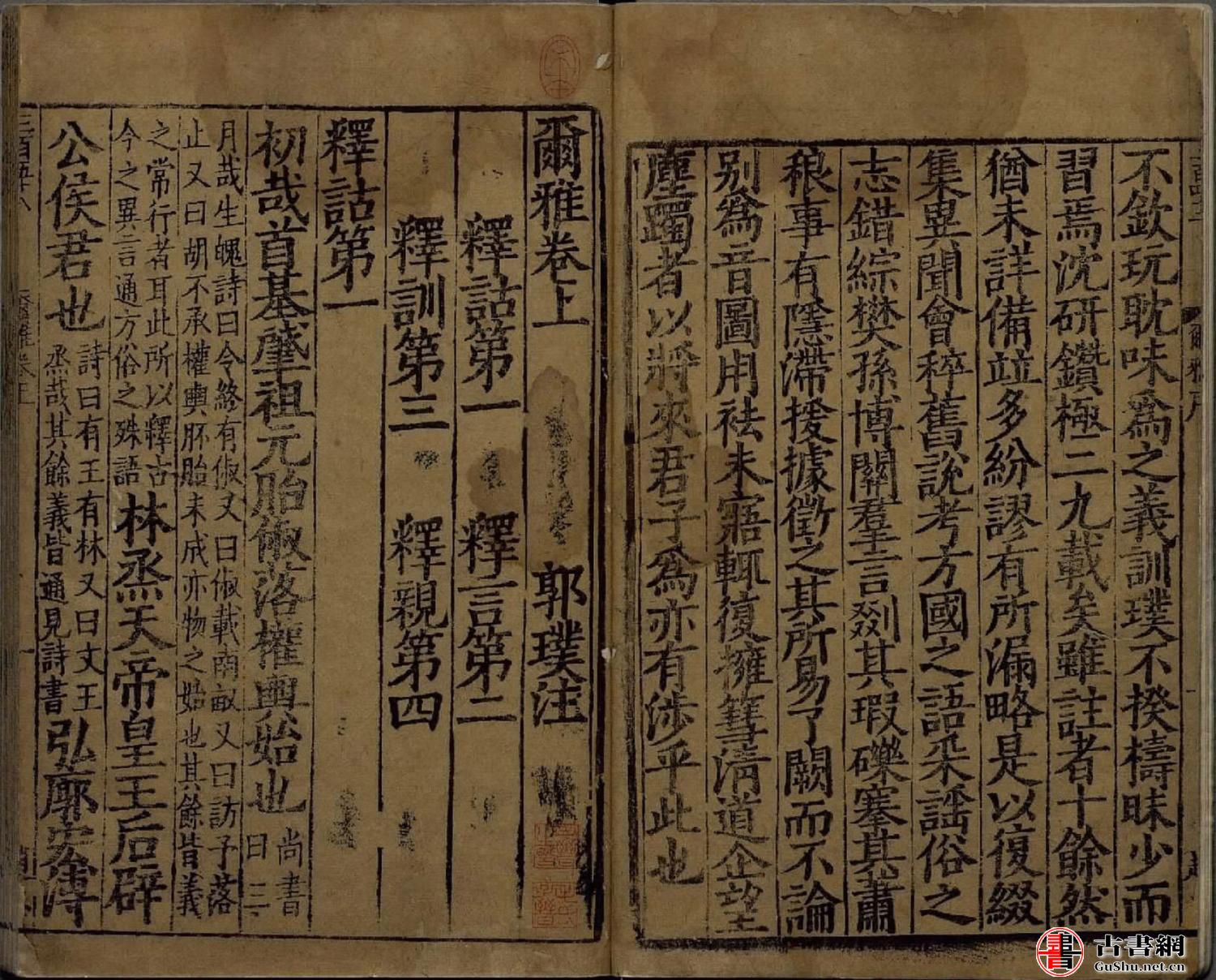 爾雅 卷上 郭璞注 釋詁第一 釋言第二 釋訓第三 釋親第四