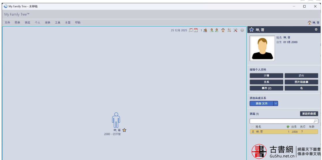 My Family Tree 是一款功能完整,且操作界面直观、漂亮的免费家谱(家庭树)制作软件。所谓的家庭树就是一种描绘家庭里各个成员的数据,以及他们之间关系的树状结构图。当一个家族成长到庞大规模的时候,就可以利用家庭树来了解血脉传承的过程,甚至也能应用在医学上探究家族病因。My Family Tree 能让使用者在新增成员的时候,加入他的出生和死亡时间、地点;用遗传数据描述血型、外观特征;也能附上照片或加入一段简述;如果要更详尽一点的话,还能添加在一生当中所发生的各种事件,成为一个人的事纪。