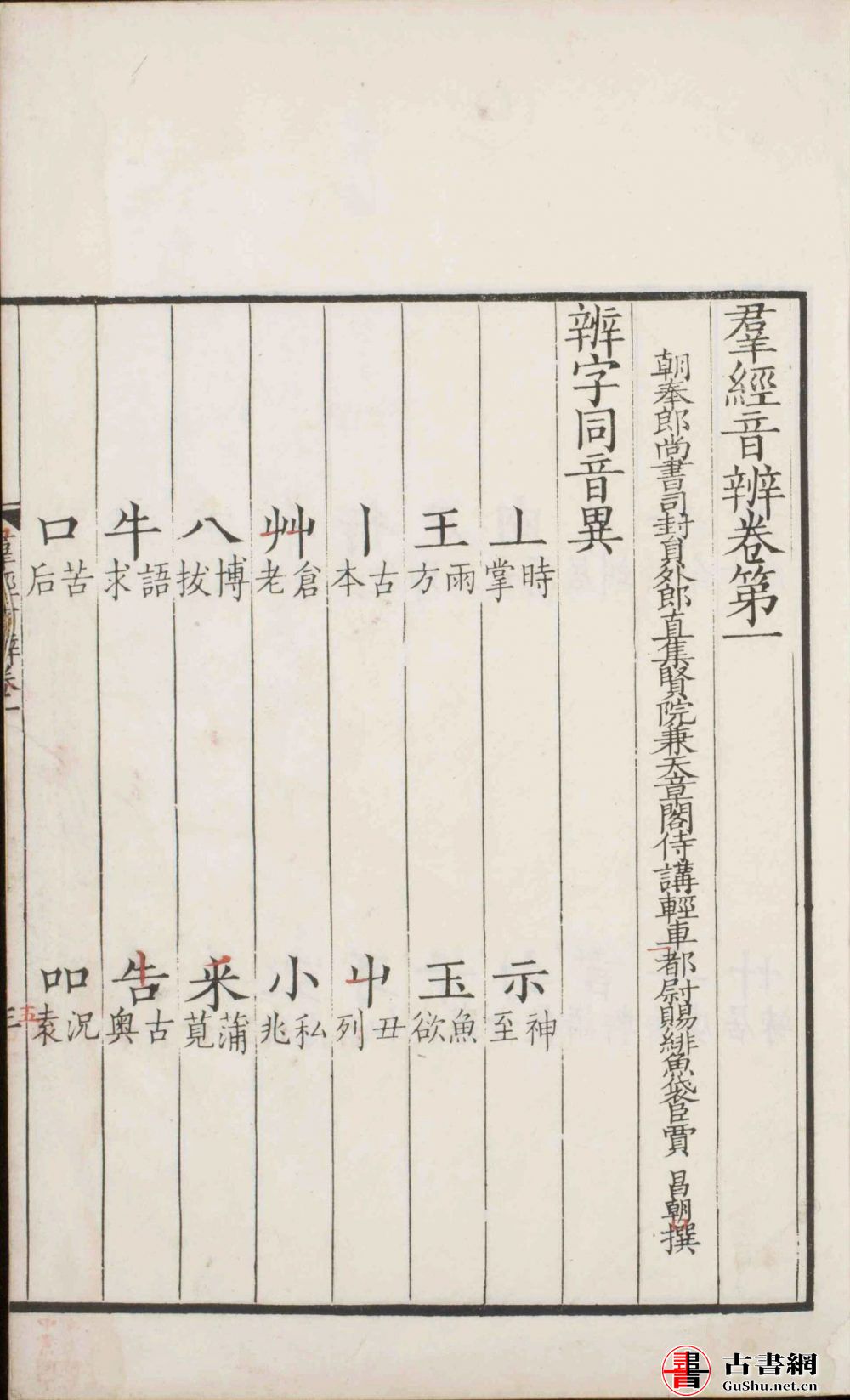 卷一至卷五:辨字同音异