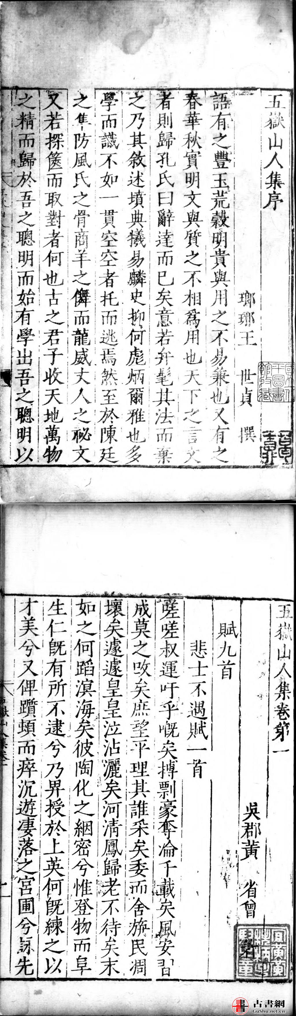五岳山人集. 三十八卷. 明. 黄省曾撰. 明代刊本. 卷 22.23 配清抄. 灰度胶片丨中国国家图书馆藏