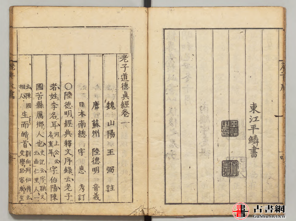 老子道徳真経 注釈者王弼(魏)/陸徳明(唐)音義/校訂者宇佐美恵 明和07年刊本