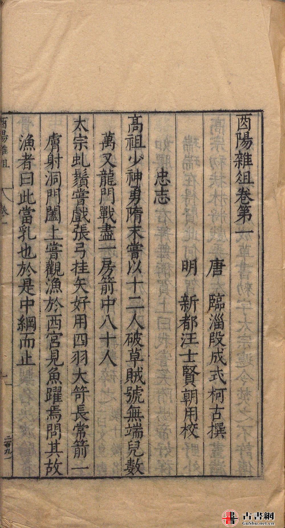 前题:唐 臨淄 段成式 柯古撰、明 新都 汪士賢 朝用校