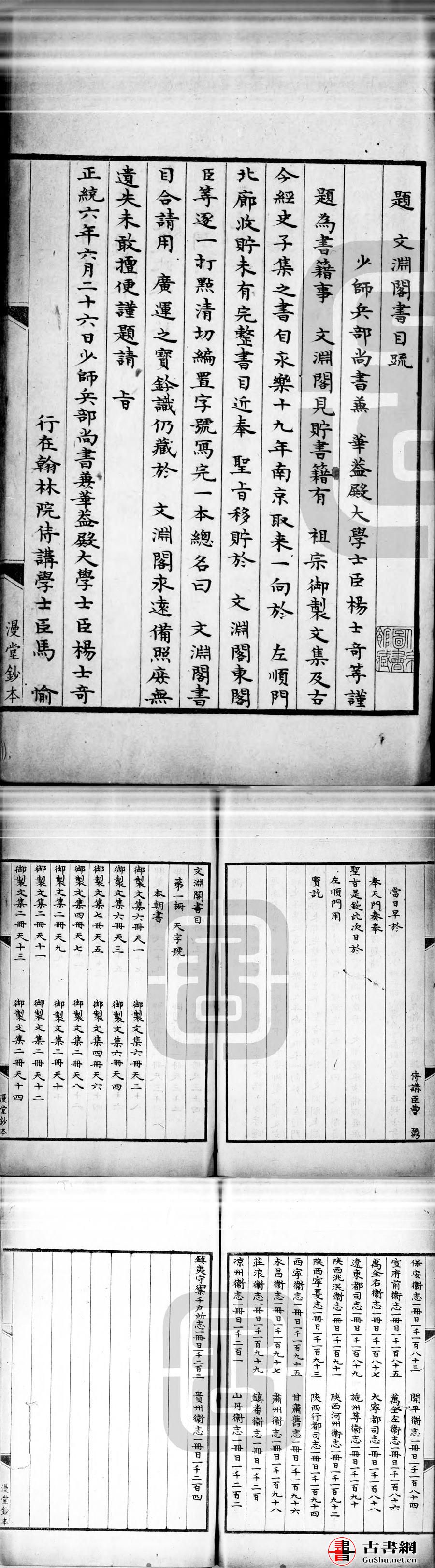 文渊阁书目. 明. 杨士奇等撰. 清代宋氏漫堂抄本. 书号 15851. 灰度胶片丨中国国家图书馆藏(有水印)