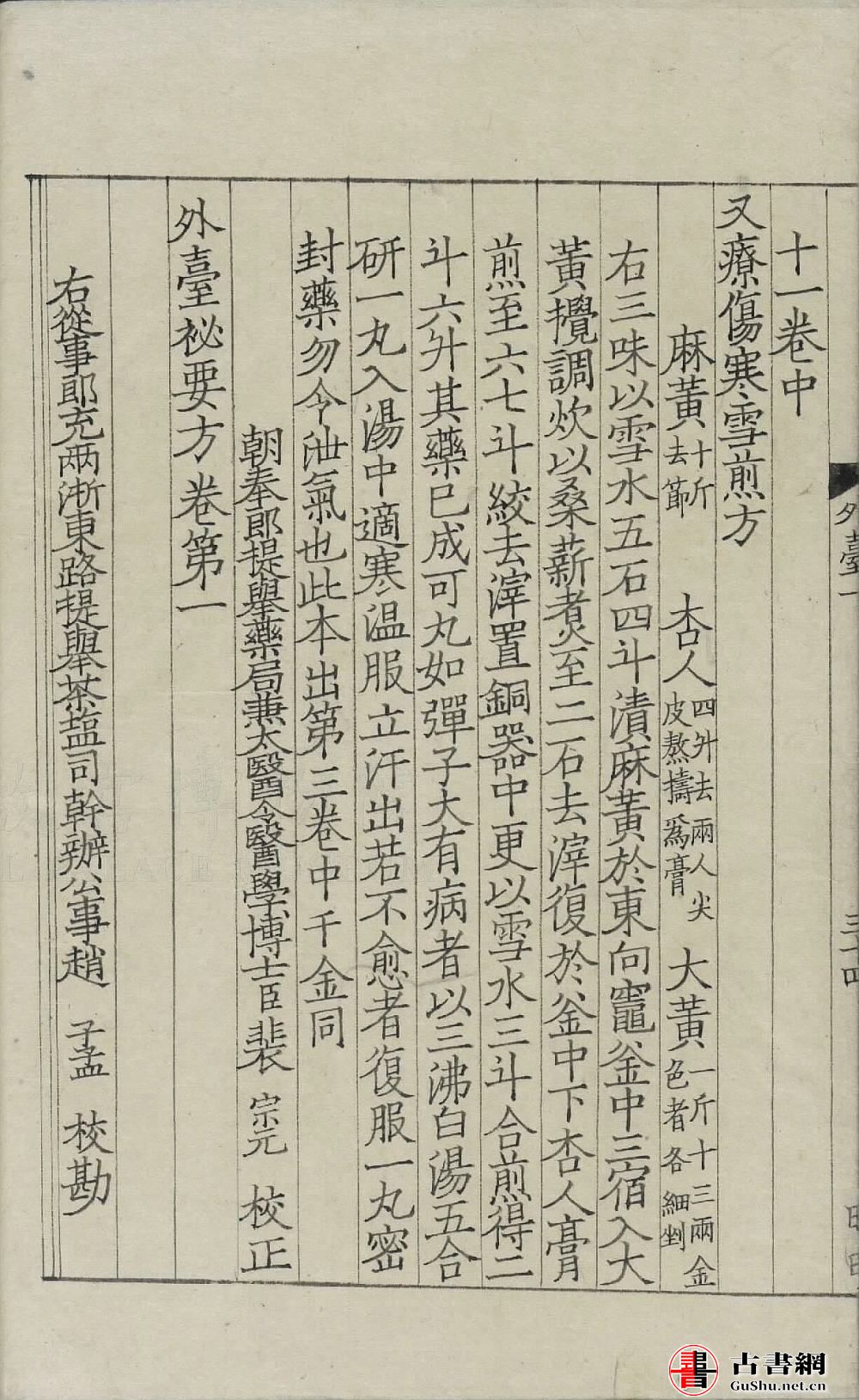 杨守敬题记 卷一:伤寒上十二门 皇佑三年五月二十六日内降札子、后跋 卷末记:右從事郎充兩浙東路提舉茶塩司幹辨公事趙子孟校勘